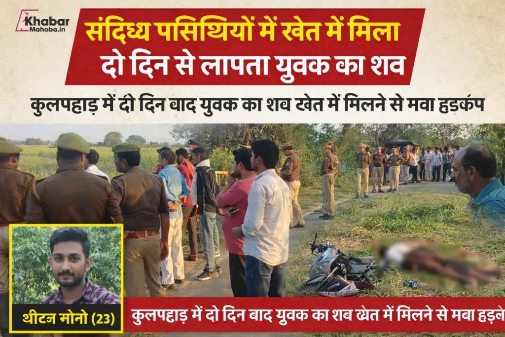 महोबा जिले के कुलपहाड़ थाना क्षेत्र में उस समय सनसनी फैल गई जब दो दिन से लापता एक युवक का शव खेत में पड़ा मिला। घटना की जानकारी मिलते ही इलाके में लोगों की भीड़ जुट गई और परिजनों में कोहराम मच गया।