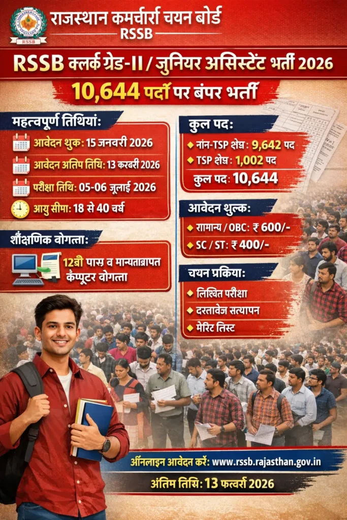RSSB Clerk Jr-II / Junior Assistant Recruitment 2026: 10,644 पदों पर बंपर भर्ती, आवेदन प्रक्रिया शुरू राजस्थान कर्मचारी चयन बोर्ड